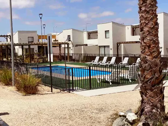 Casa en Condominio privado completamente equipada, 3 dormitorios 1 en suite, 2 baños, cocina con lavavajillas, terraza con quincho en ambiente privado, acceso a piscina y juegos infantiles.